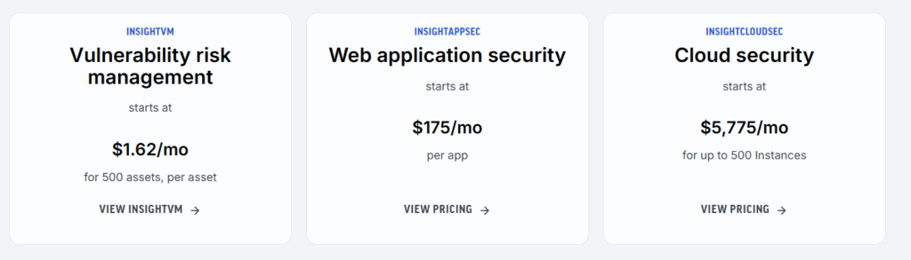 - Vulnerability Management: Starts $1.62/month (500 assets).